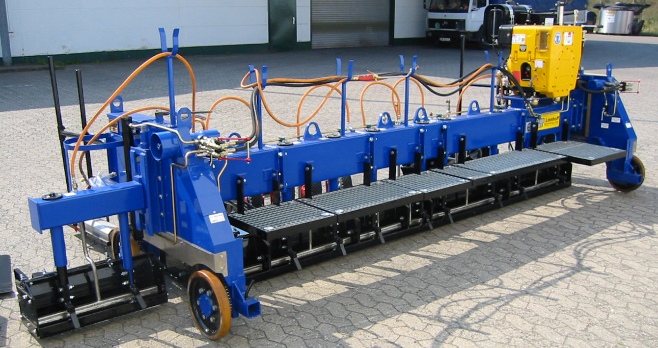 Особенностью стандартных укладчиков литого асфальта является возможность их использования для укладки в стесненных условиях, например в тоннелях, на подземных стоянках, ангарах. Стандартная ширина уложенного слоя литого асфальта может составлять при этом от 0,5 м до 7,5 м. Практически речь идёт не о классическом укладчике, а о брусе, разравнивающем жидкий литой асфальт, который выгружается перед ним из транспортных котлов (кохеров). При укладке широких полос в комплектации машины предусматривается распределитель, который распределяет литой асфальт в равномерных количествах перед брусом для равномерной укладки.