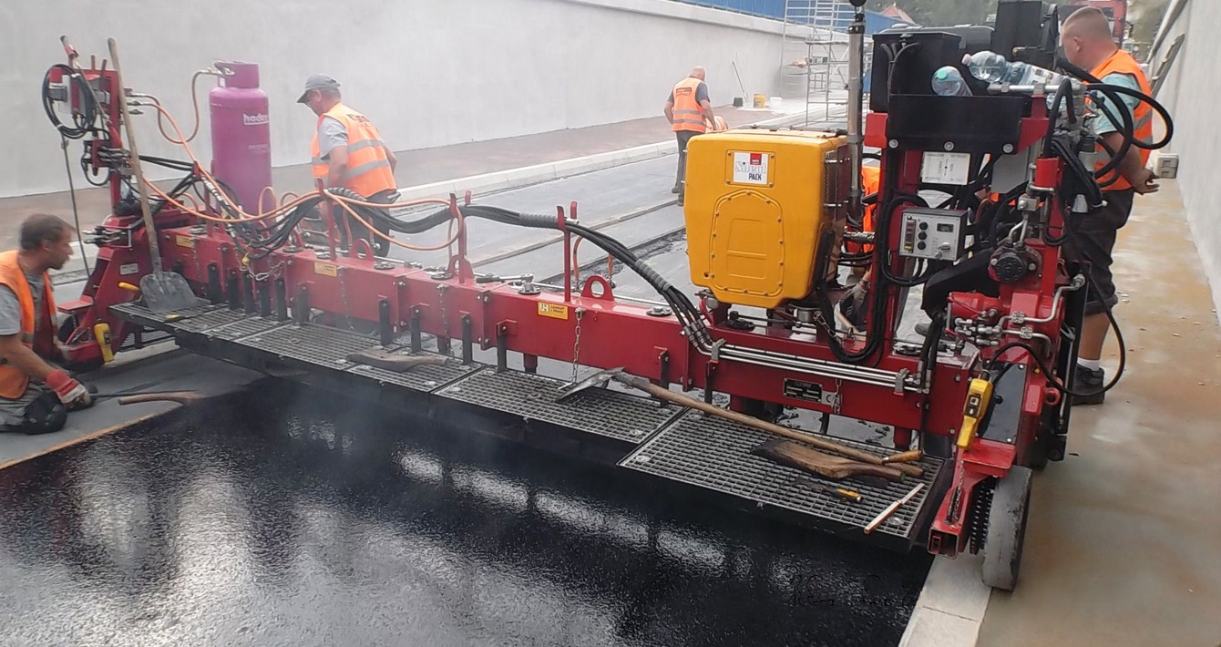 Для перемещения укладчиков при укладке литого асфальта применяются колеса, поверхность которых изготовлена из термоустойчивой резины Vulkollan, или гусеничные привода.