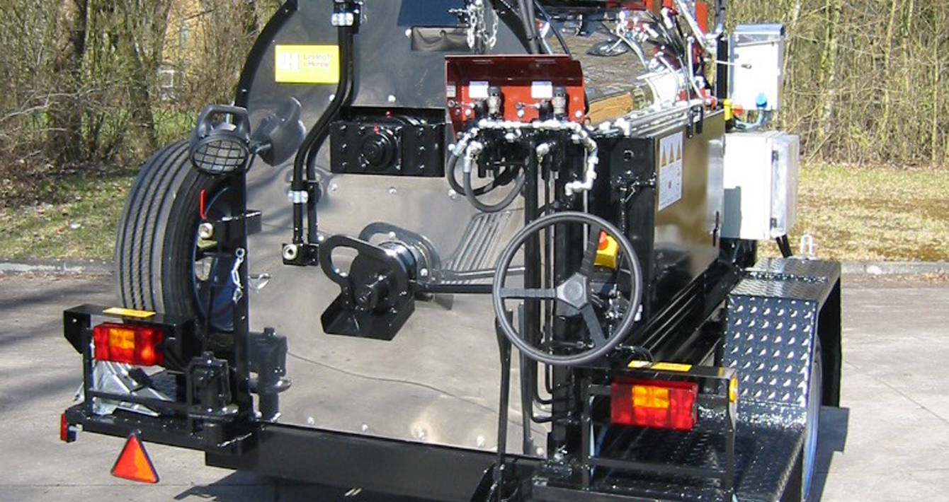 Конструкция выполнена в виде одноосного или двухосного прицепа и может иметь приводное колесо для самостоятельного плавного перемещения в процессе заливки швов битумной мастикой. Заливщик швов компании Linnhoff & Henne GmbH & Co. KG предлагается заказчику с котлом (кохером) вместимостью от 200 до 700 литров. А также предлагается ручной заливщик для небольших объемов работ.