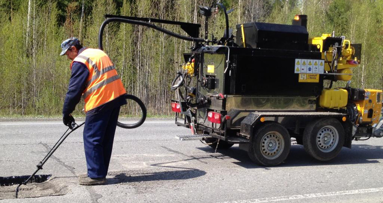 После заполнения котла осуществляется постоянное перемешивание битумной или термопластичной массы до достижения заданной температуры. Разогретая битумная или термопластичная масса с помощью насоса подается в шланг, который заканчивается специальным устройством, называемым пикой. С ее помощью оператор производит заливку швов битумной или термопластичной массой.